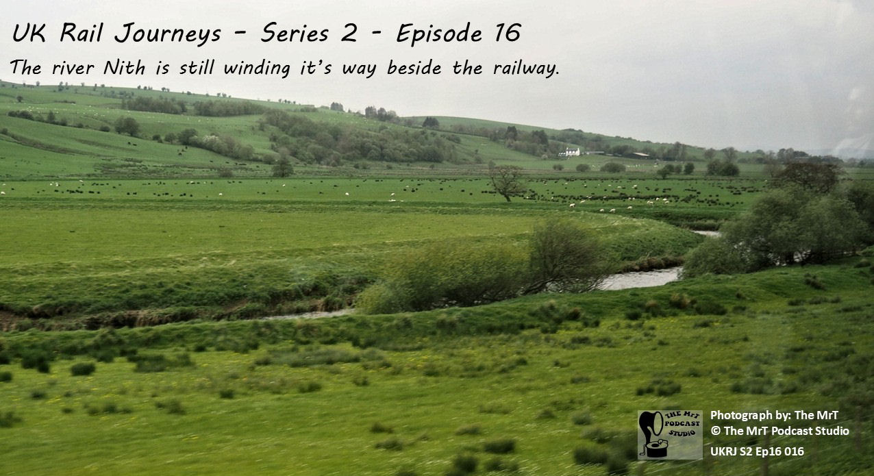 We follow the winding River Nith for around thirty-seven miles. Around six miles north of Dumfries we encounter Portrack Viaduct, a notable river crossing. Today’s red viaduct, a replacement, dates from December 2013.